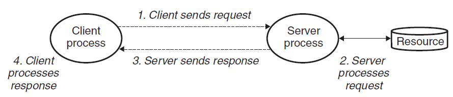 클라리언트-서버 모델의 근본적 연산은 트랜젝션이며 위 그림과 같이 네 단계로 구성된다.