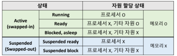 메모리를 할당받지 못하거나 빼앗긴 상태의 경우 Suspended를 붙인다.