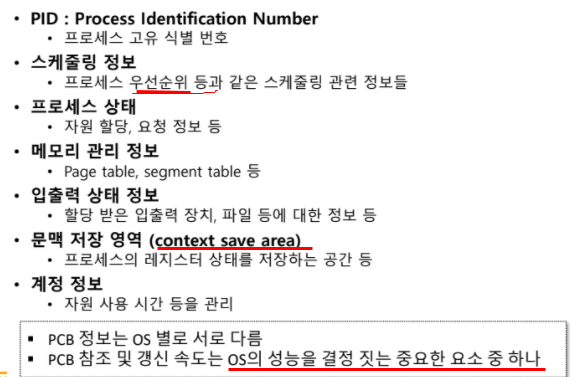 pcb가 관리하는 정보?