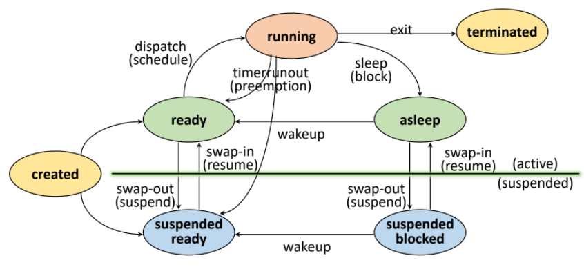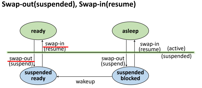 가용 메모리 공간의 유무에 따라 Rready 혹은 Suspended ready로 전이된다.