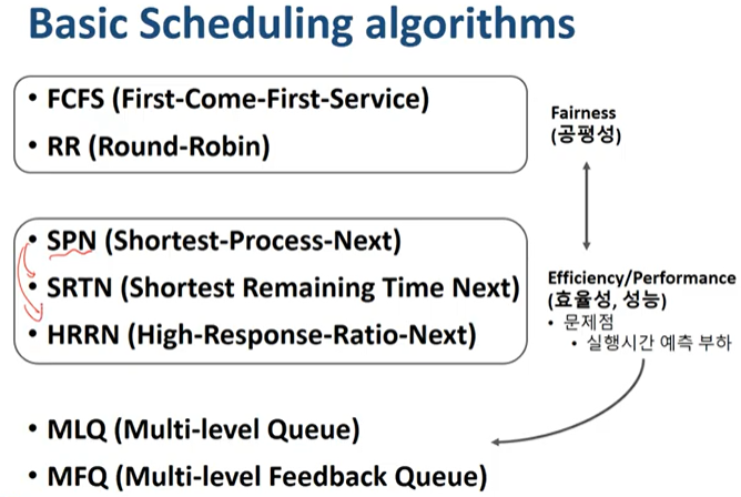 - 스케쥴링은 한정된 자원 둘을 효율적으로 관리하는 것으로 그 목표는 근본적으로 시스템의 성능 향상이다.