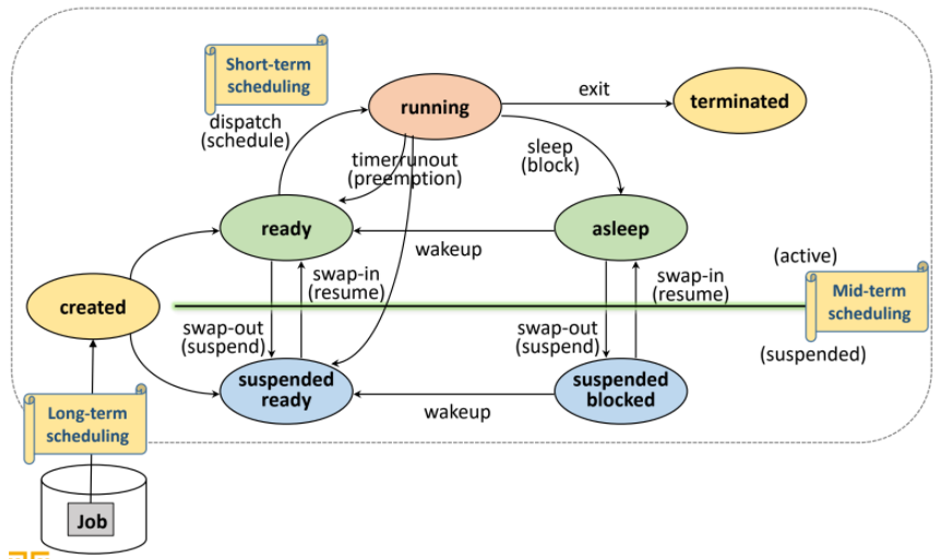 프로세스 트렌지션 다이어그램에 각 스케줄링의 위치를 표시한 것이므로 기억해두면 좋다.