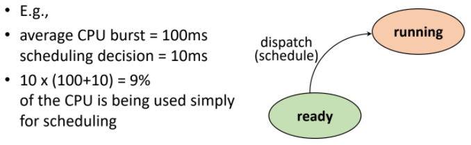 이시스 템의 장점은 자원 독점을 방지할 수 있지만 제한시간이 지날 경우 프로세스가 바뀌어야 하므로 Context switch가 자주 발생하고 이는 overhead로 이어진다.