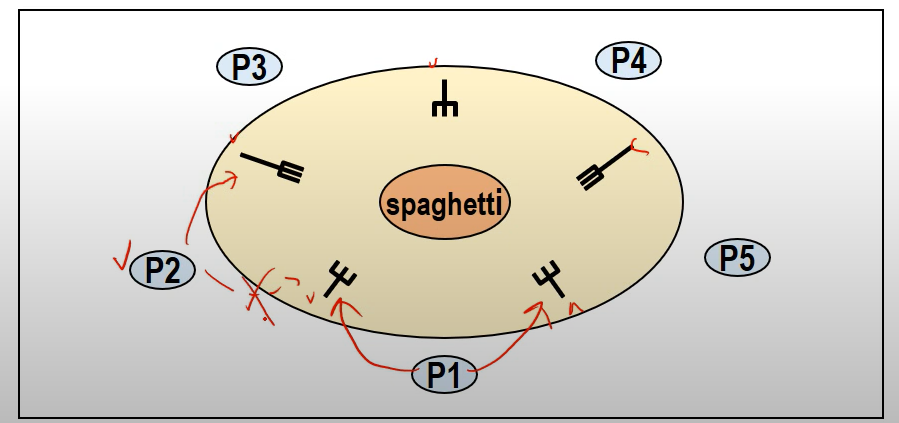 철학자들은 스파게티를 먹기 위해서는 양손에 포크 2개를 모두 들어야 한다.