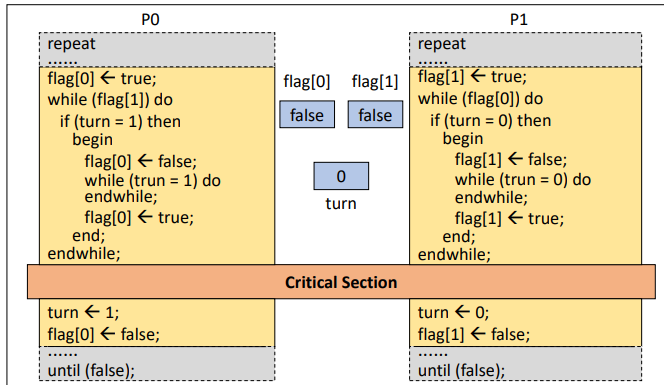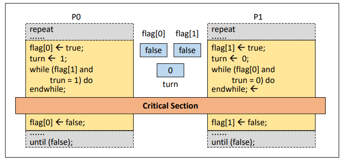 피터슨은 위 데커스 알고리즘을 보다 간단히 구현한 알고리즘이다.