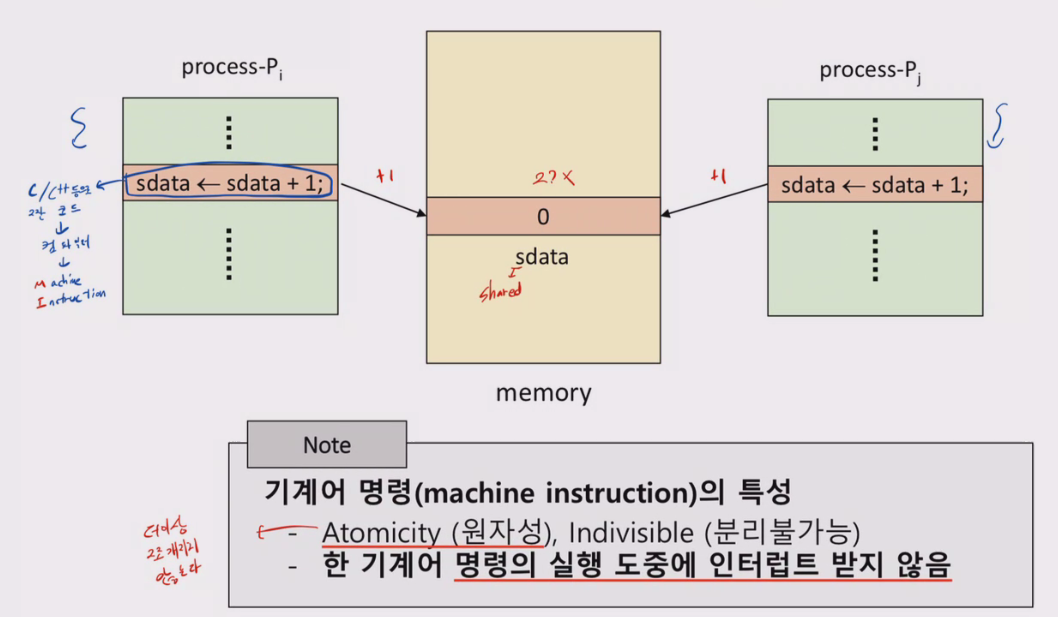 OS가 indivisible 한 연산을 보장해주며 전제가 한 instructin cycle에서 수행된다.