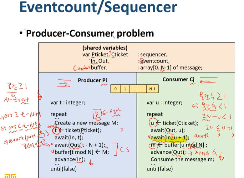 Eventcount 또한 정수형 변수로 새 성시 0으로 초기화되어있고 감소하지 않는다.