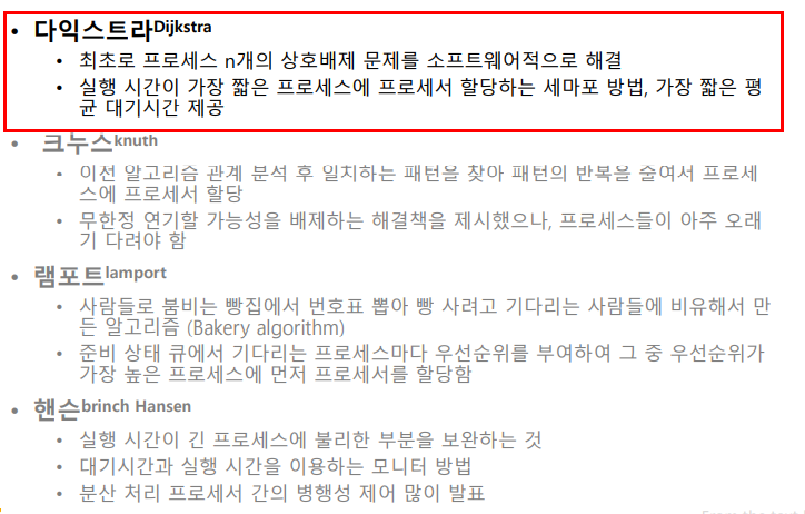 1965년 다익스트라님이 제안했으며 Busy waiting 문제를 해결하였다.