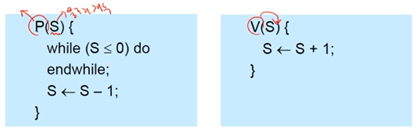 P() , V() 연산은 OS가 indivisible(or atomic)을 보장한다.