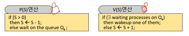 스핀 락과 비슷하게 초기화 연산 P 와 V로만 접근이 가능하다