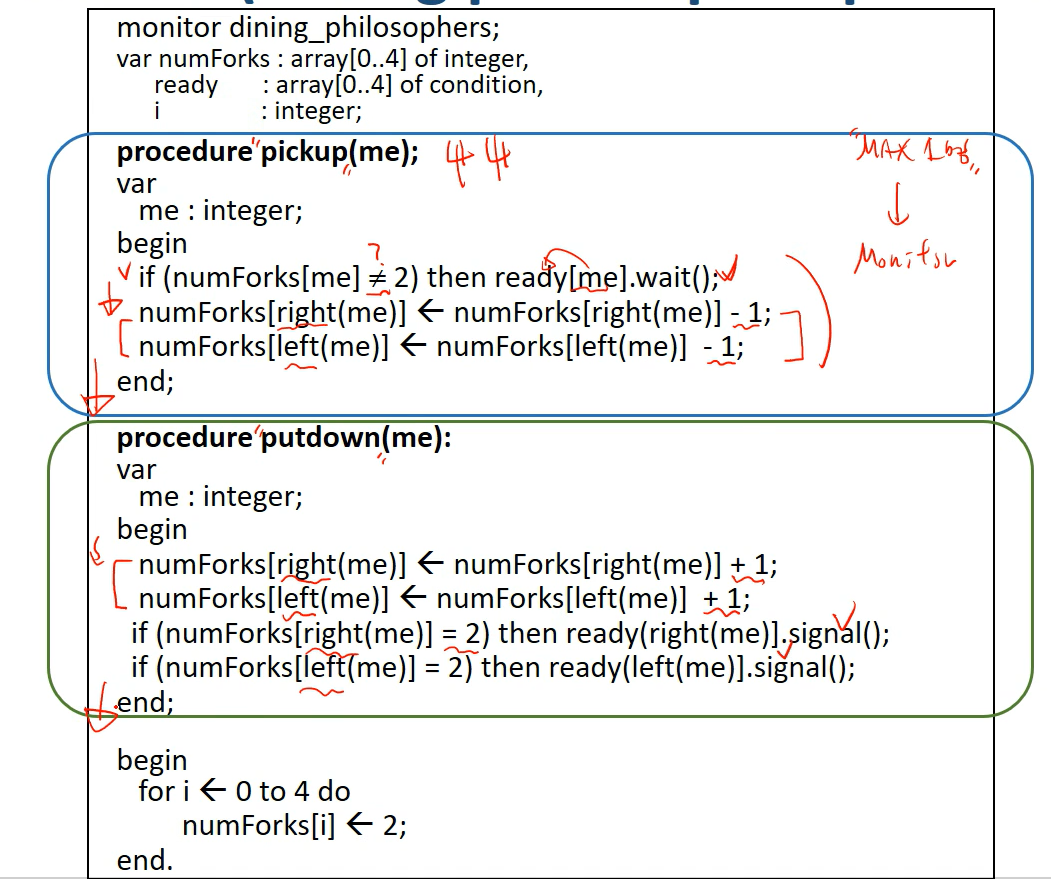 Monitor, Path expressions, Serializers, critical region, conditional cricital region 등 이 있다 이중 Monitor에 대해서 내가 본 강의는 설명하고 있다.