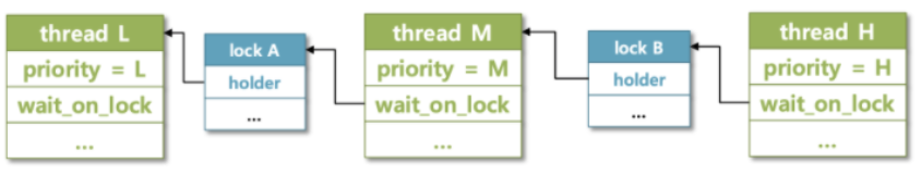 lock 요청이 들어왔을때 해당 락에 대한 holder가 이미 존제한다면 요청한 자신의 우선순위를 기부함을 현재 소유자에게 알리고 우선권을 양보하는 과정을 넣어준다.