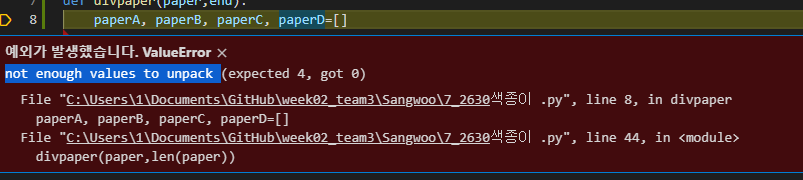 unpack 하기에 값이 부족하다>?