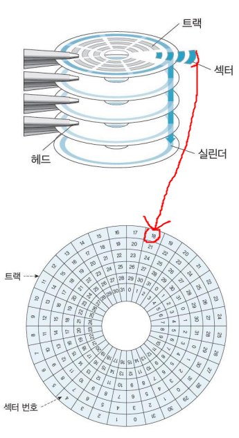 디스크 드라이브에서 원하는 섹터를 찾아가려면 어떠한 정보가 필요할까?