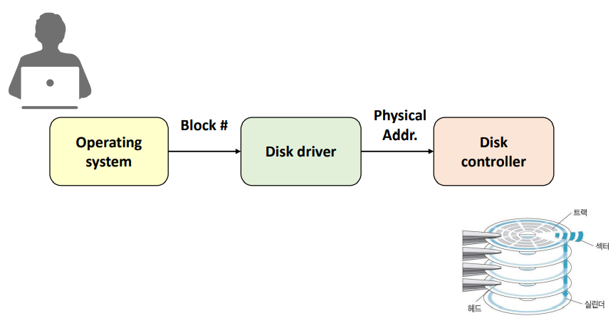 그럼 OS가 B0의 데이터를 부르려고 요청하면 이를 실제 PA로 바꿔줄 역할을 하는 무언가가 필요한데 이게 바로 우리가 어떠한 HW를 받으면 설치하게 되는 Disk driver이다.