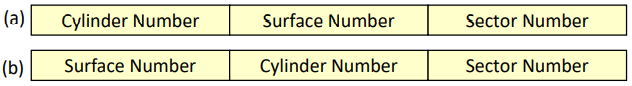 아래 a 또는 b 처럼 몇번째 몇번째 실린더에 있는지 어느 surface에 있는지 몇번째 섹터에 있는지를 알아야 할것이다.